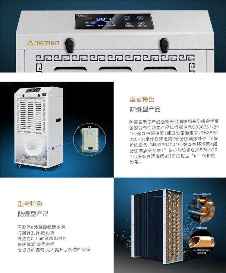 安詩曼是專業防爆工業除濕機生產廠家,主要產品有工業除濕機,高溫烘干機,轉輪除濕機,低溫除濕機,吊頂除濕機,商用抽濕機,商用除濕機,工業抽濕機,工業干燥機等產品
